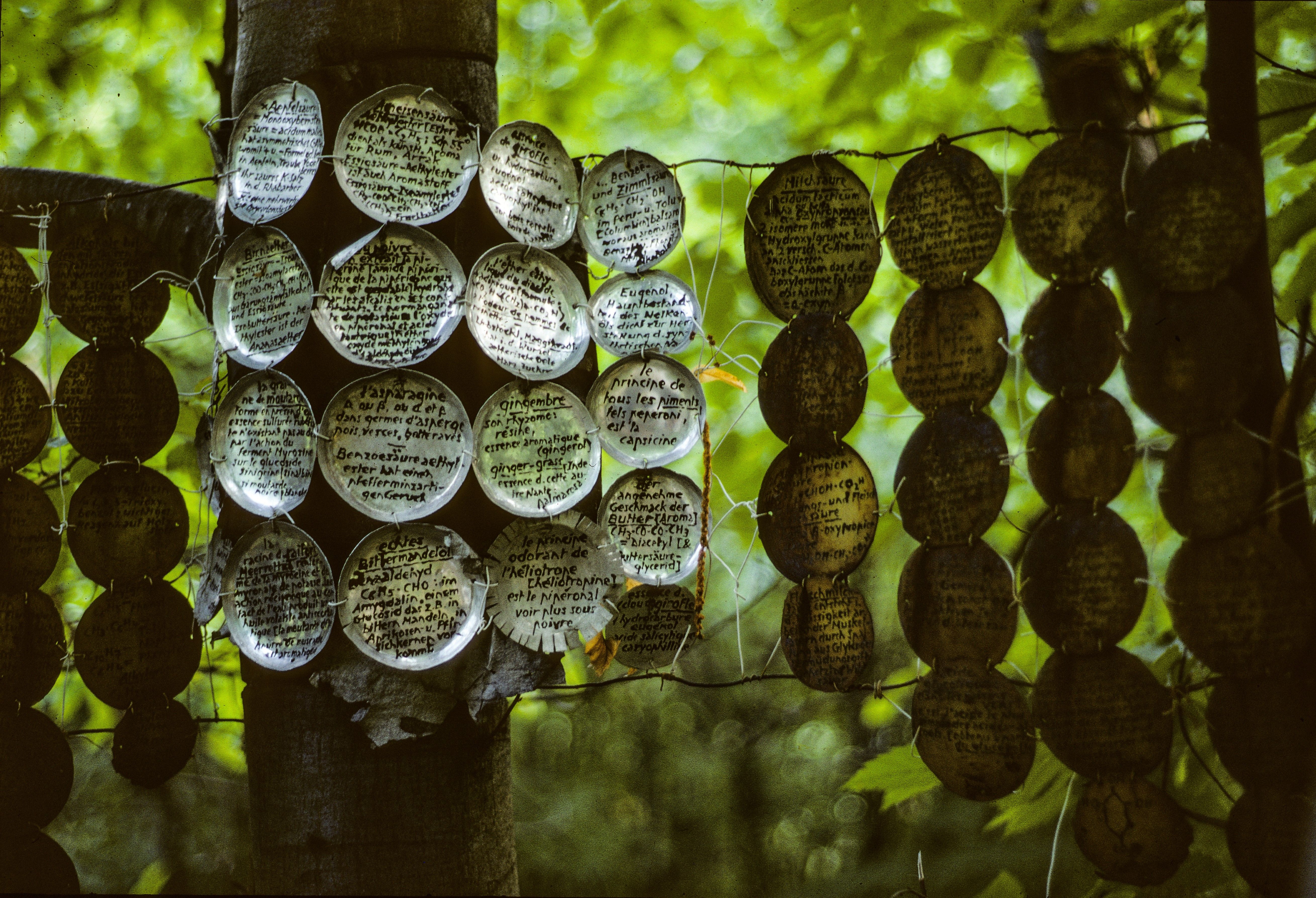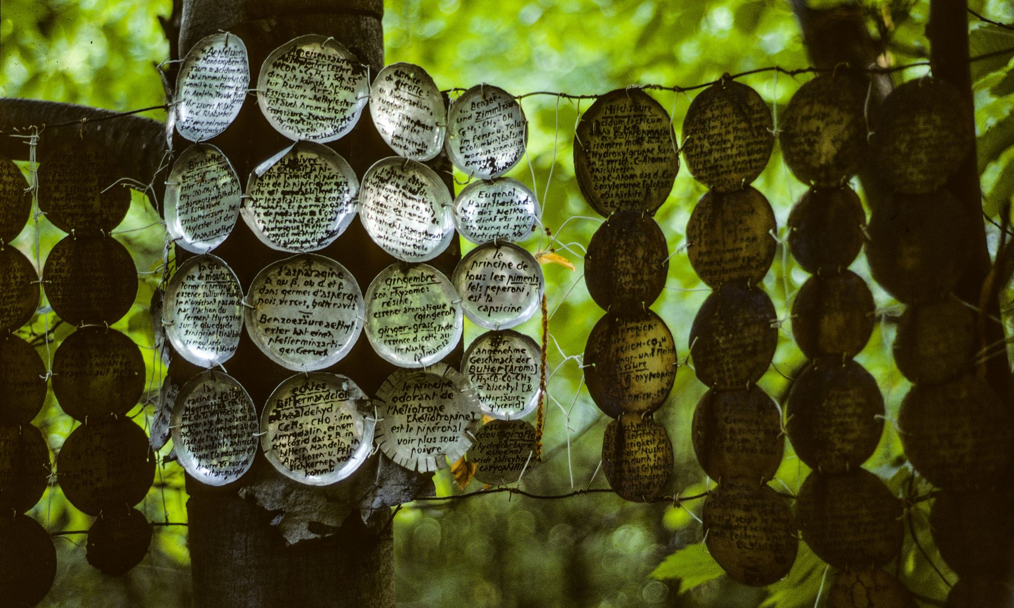 At the age of 50, Armand Schulthess (Neuchâtel 1901- Auressio 1972) quit his job as a federal officer in Bern and exiled himself in a country house in Auressio, Ticino. Isolating himself from the outside world, he dedicated the rest of his life to the planning of his 18’000m2 property. He built a network paths and walks with perspectives and resting places. He hanged thousands of metal plates on the trees on which he had reproduced texts on psychoanalysis, literature, astronomy and music. His garden became an outdoor encyclopaedia, a bucolic labyrinth which embodied his artistic, philosophic and scientific philosophy. On his death in 1972, his heirs and the Ticino authorities decide to destroy his œuvre. Luckily, some of his creations were saved by people who understood the importance of his outstanding project.